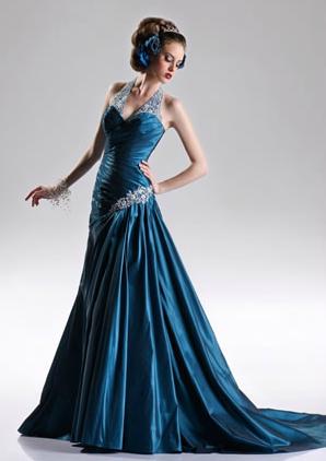 Vestidos espectaculares de noche color azul-celest...